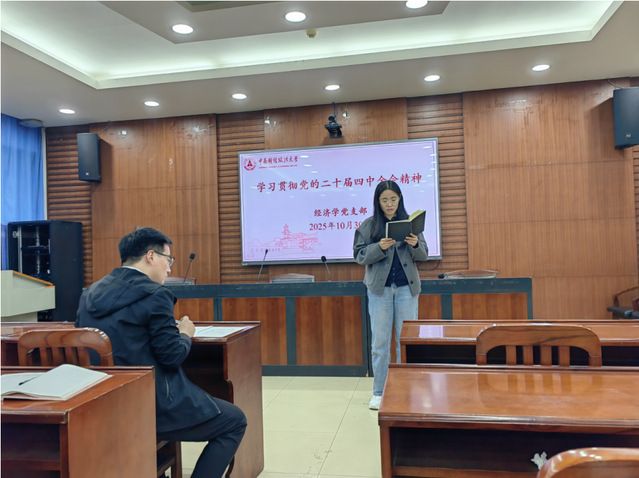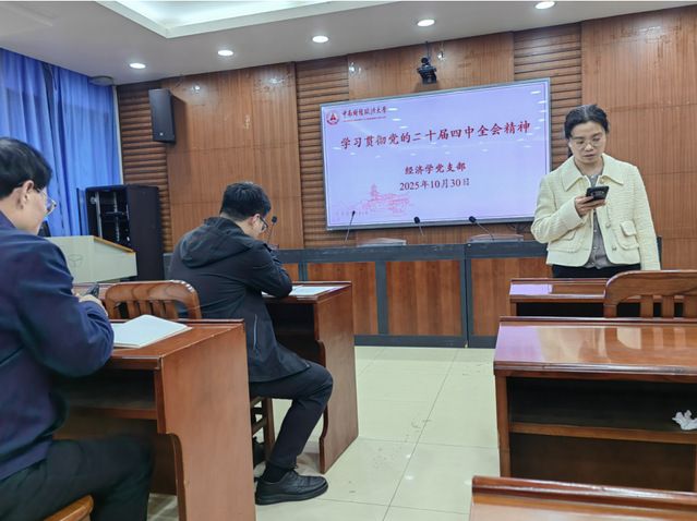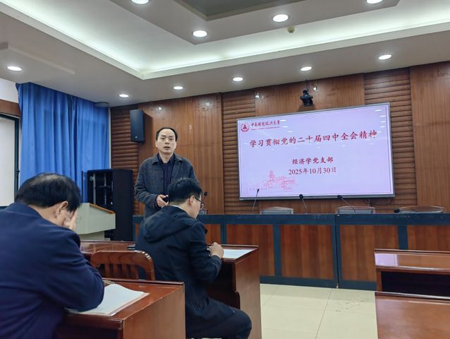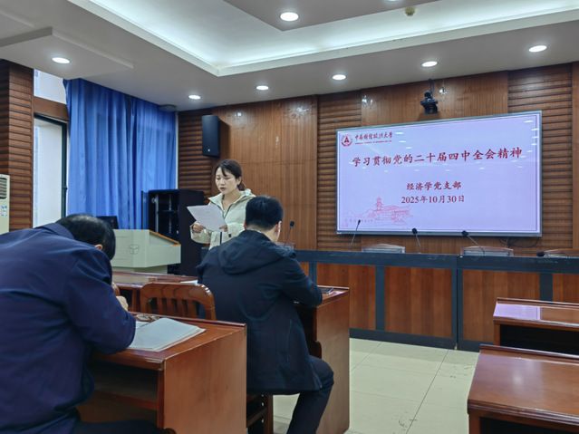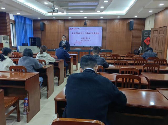 为深入学习贯彻党的二十届四中全会精神,切实把思想和行动统一到党中央决策部署上来,10月30日下午,*禁漫天堂 经济学党支部在文泉南206会议室组织召开专题学习会,围绕全会审议通过的《中共中央关于制定国民经济和社会发展第十五个五年规划和二〇三五年远景目标的建议》展开深度研讨。党支部书记谢靖主持会议并作领学发言,党支部全体党员教师参加会议。