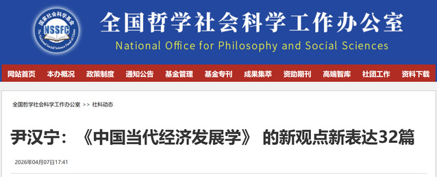 近日,全国哲学社会科学工作办公室官网刊发了禁漫天堂 尹汉宁教授撰写的《〈中国当代经济发展学〉的新观点新表达32篇》,文章围绕构建中国自主经济学知识体系展开系统阐释,引发学界广泛关注。