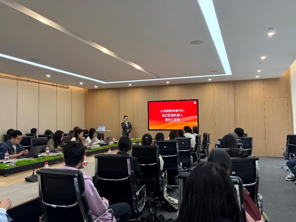 在企业分享环节,小米财务共享中心主管团队围绕同学们最关注的求职与发展问题,带来干货满满的职场赋能。主管老师们详细介绍了财务共享中心武汉中心与北京中心的业务布局,拆解采购至付款、总账、汽车结算、订单至收款等核心板块,清晰对比财务共享中心与传统财务部门在高效化、标准化、集中化运作上的差异。